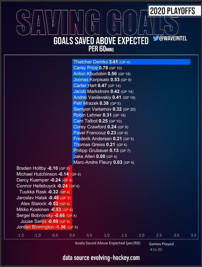 Saving Goals! 2020 Stanley Cup Playoffs - Goalie Stats